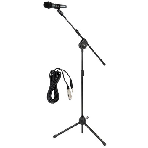 The PMKSM20 is our live/studio vocal performance starter kit. Get crystal clear audio with the included handheld dynamic microphone, built with smooth mid-frequency presence rise for excellent voice projection. Mount it on the included tripod microphone stand with an extending boom, complete with a glossy black finish. And connect it all using the 15 ft., quarter-inch (1/4”) microphone cable. Stand height adjustable from 3.3 to 5.5 ft. Boom length 7.5”.